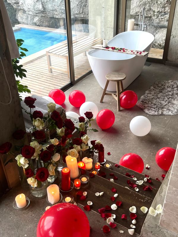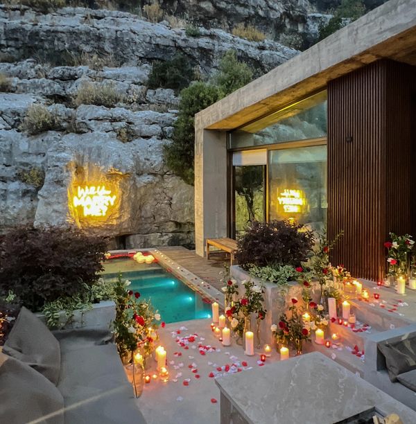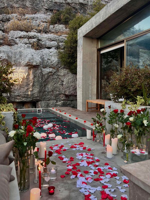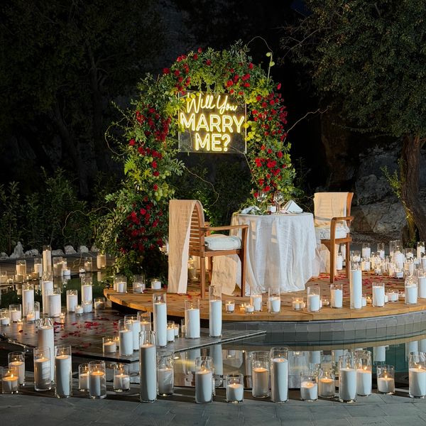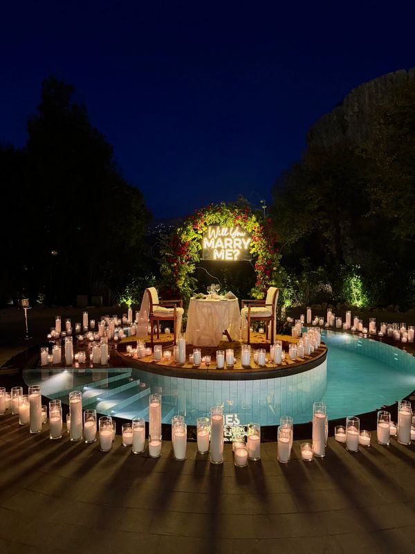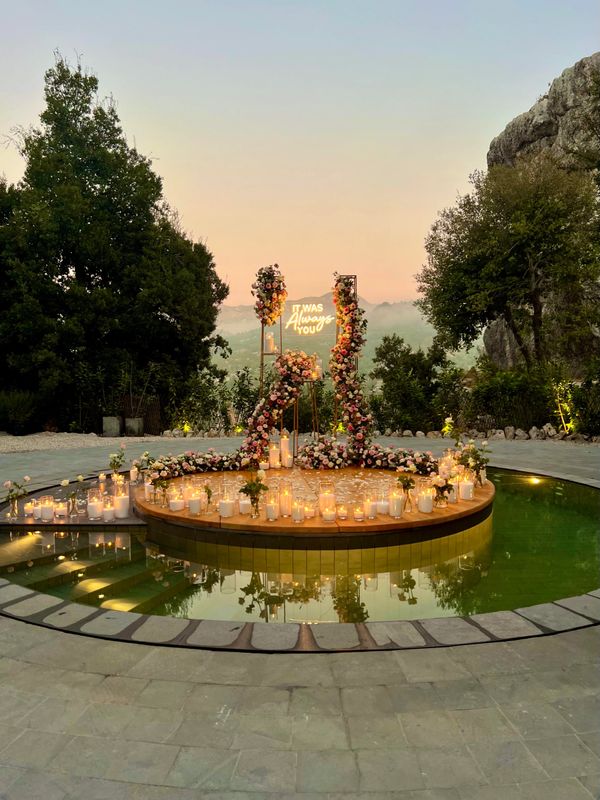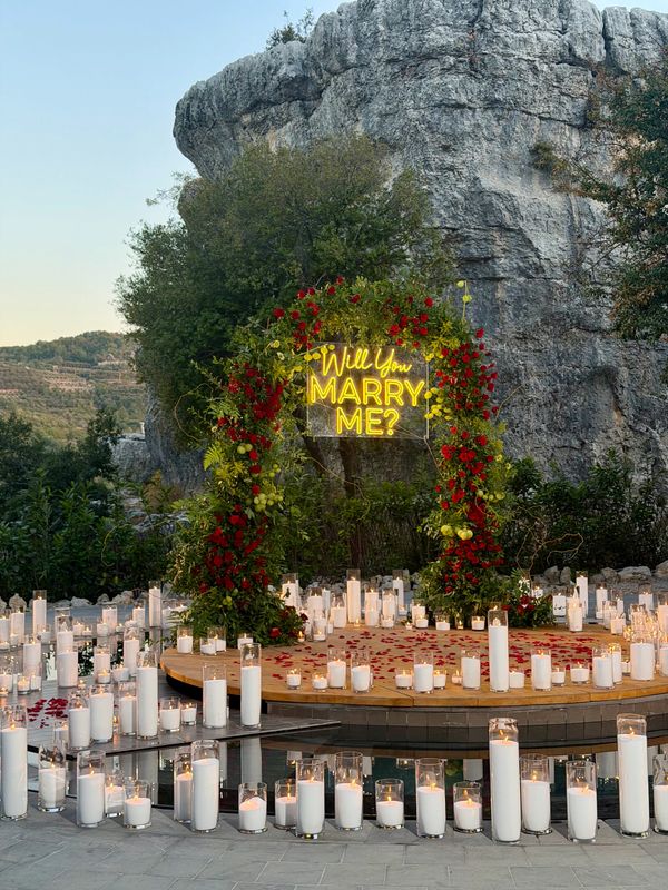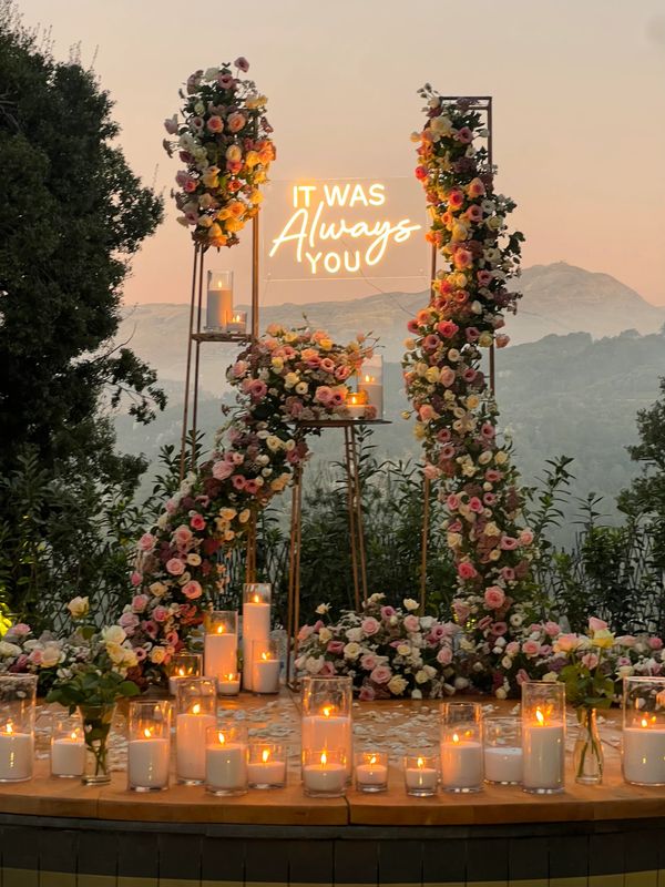 Make your "Will you marry me?" moment unforgettable with a setup tailored to your story. Featuring custom floral arrangements, meaningful decor, ambient lighting, and a unique neon proposal sign, this setup creates a magical and intimate atmosphere.