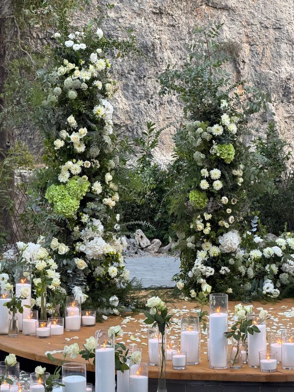 You can choose between lush green branches for a cozy, nature-inspired vibe, 45 white roses for an elegant touch, or a mix of colorful flowers for a vibrant look.