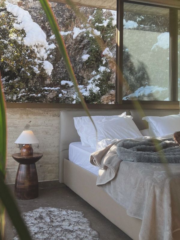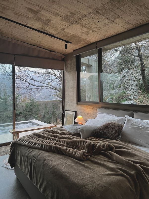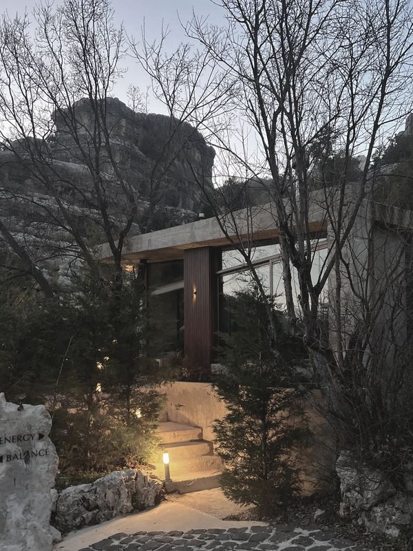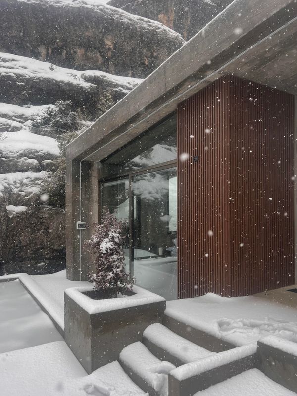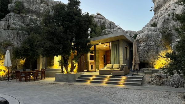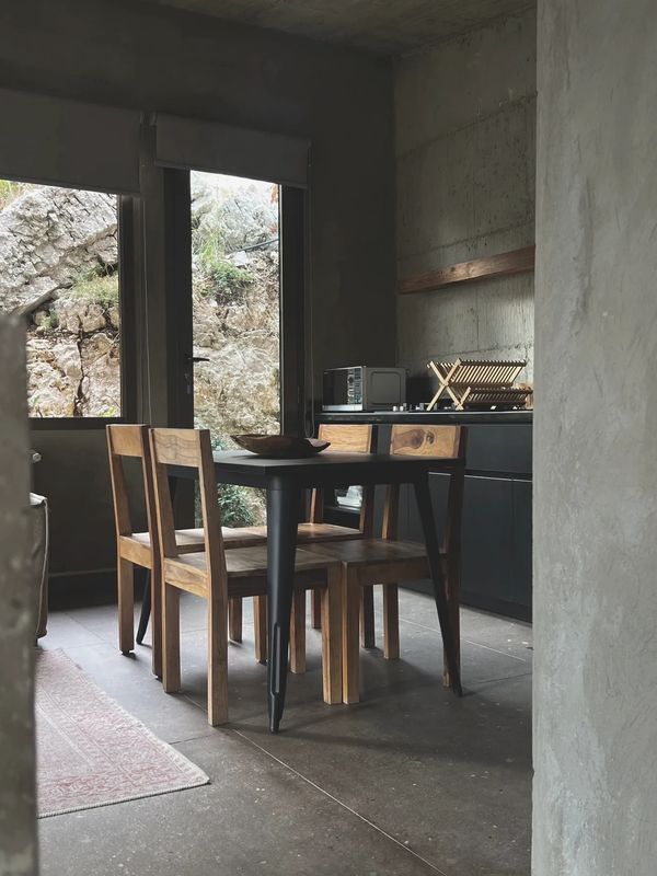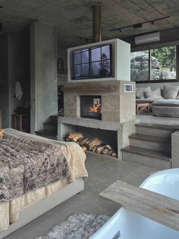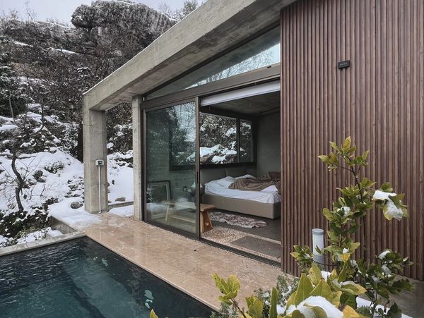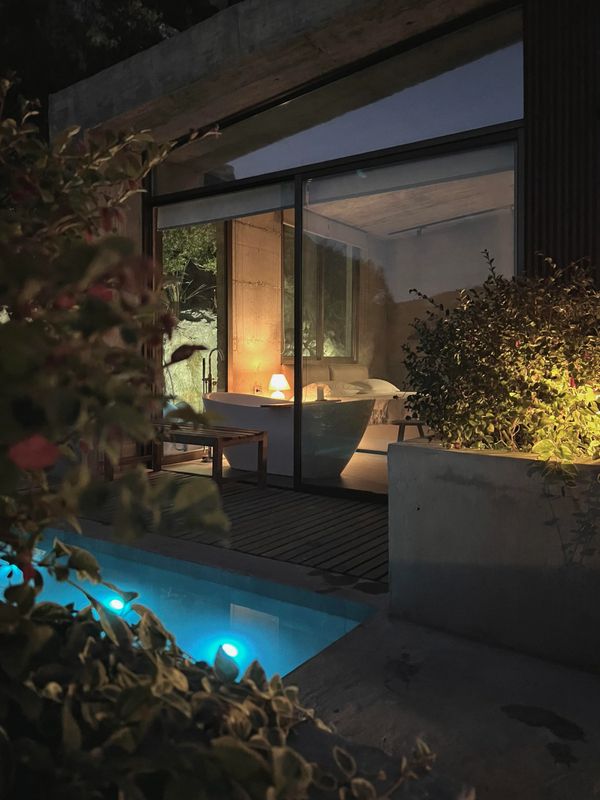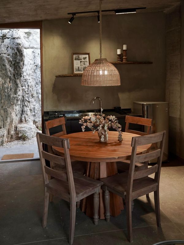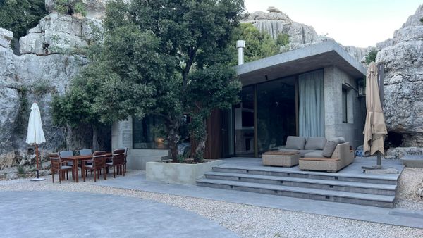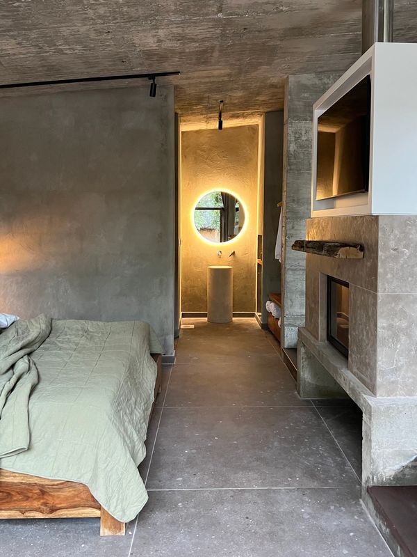 Nestled among rock formations, the Balance Villa seamlessly blends modern concrete design with nature, offering a peaceful retreat for up to four guests. Amidst the serenity of the wilderness, guests will find the perfect balance between relaxation and adventure.
