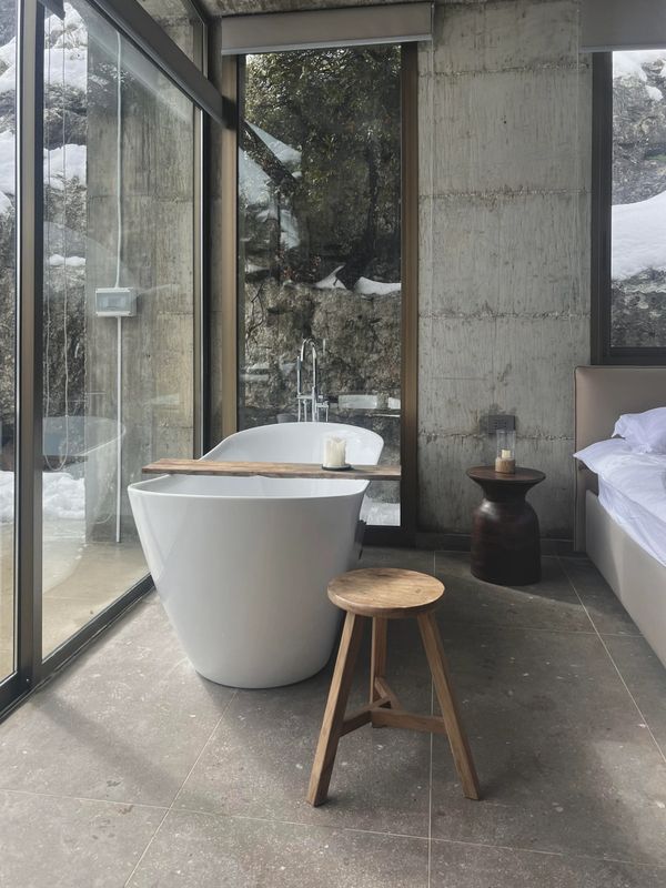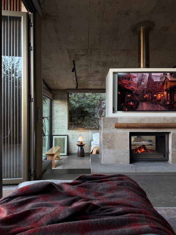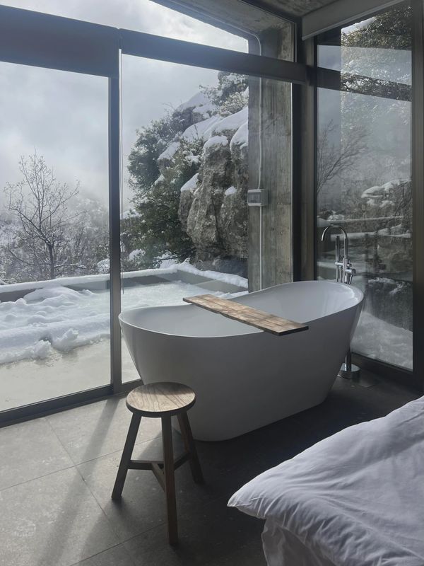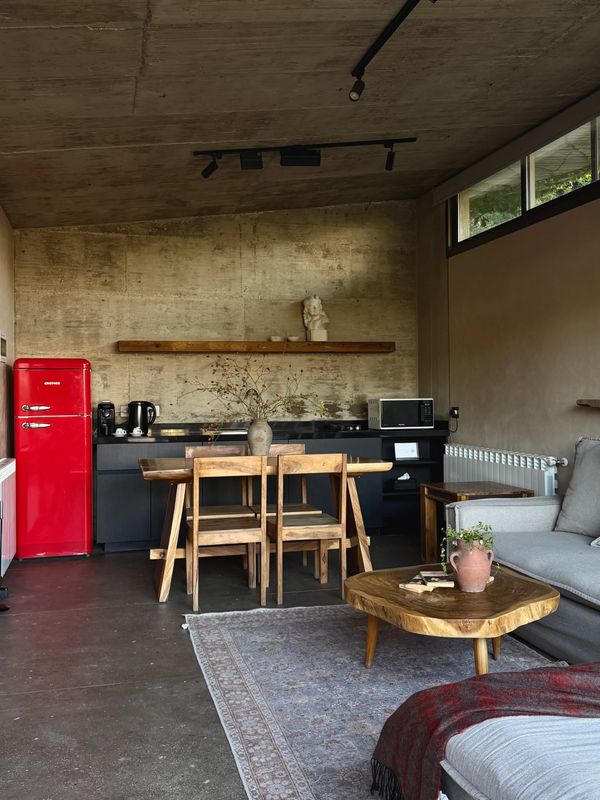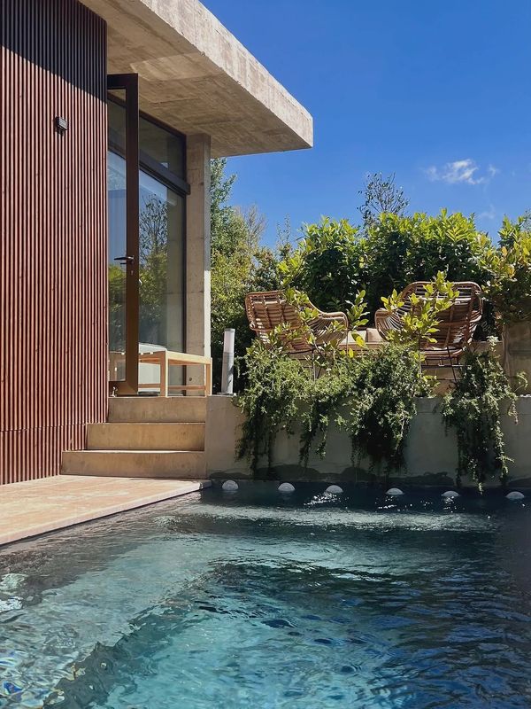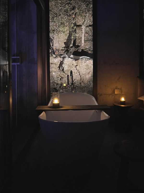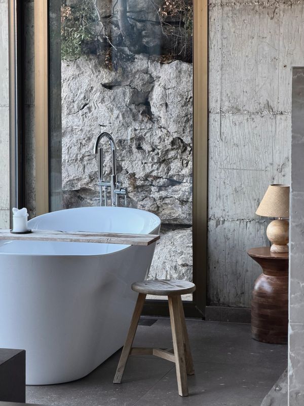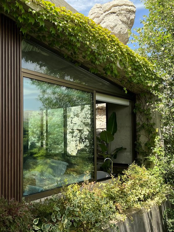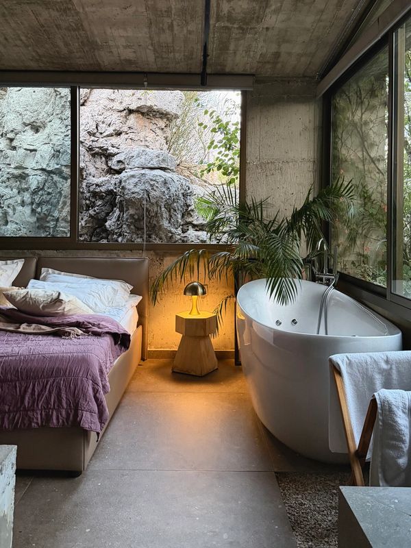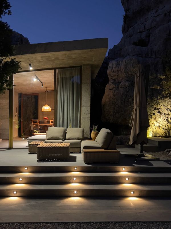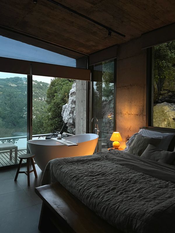 Nestled among rock formations, the Balance Villa seamlessly blends modern concrete design with nature, offering a peaceful retreat for up to four guests. Amidst the serenity of the wilderness, guests will find the perfect balance between relaxation and adventure.