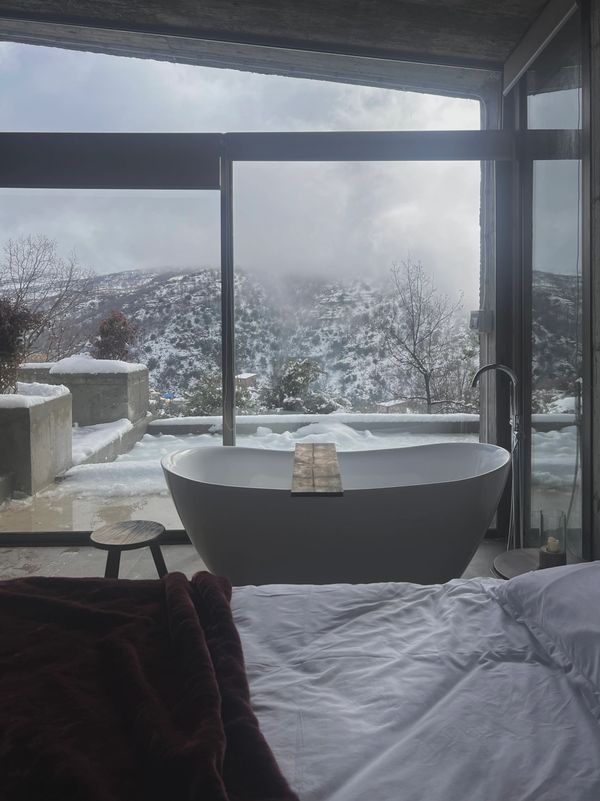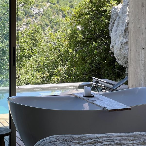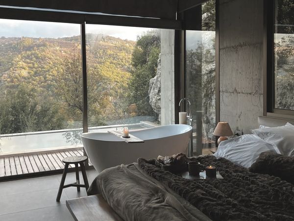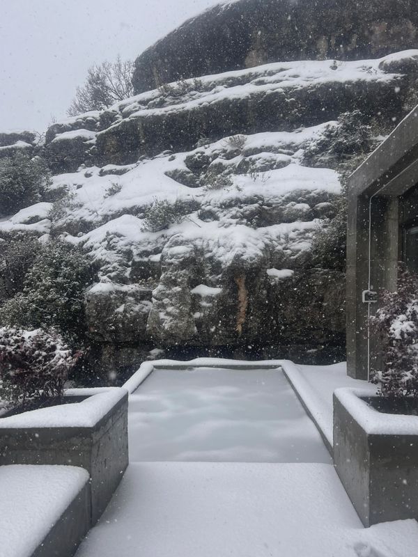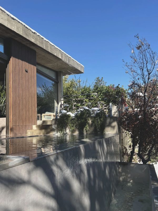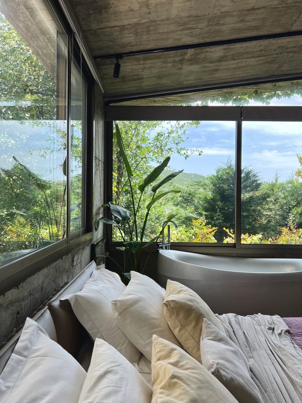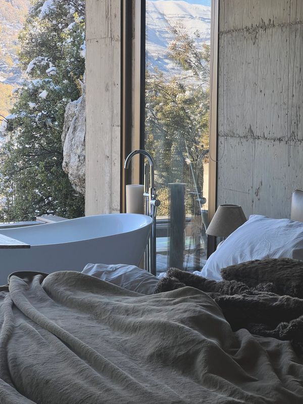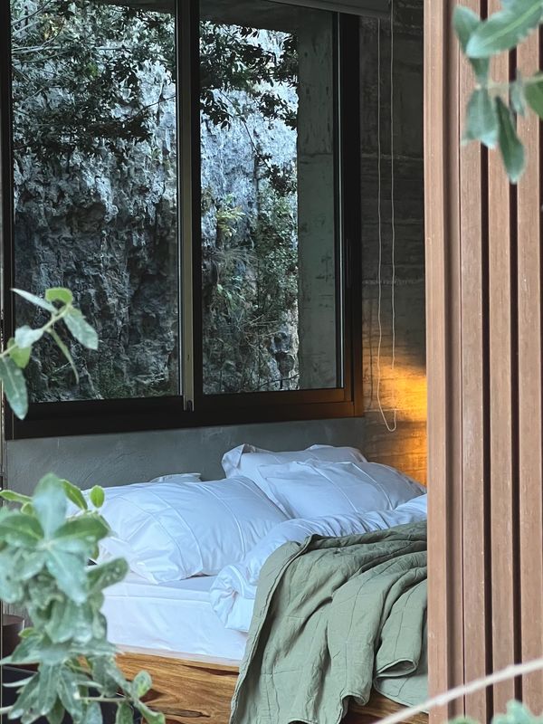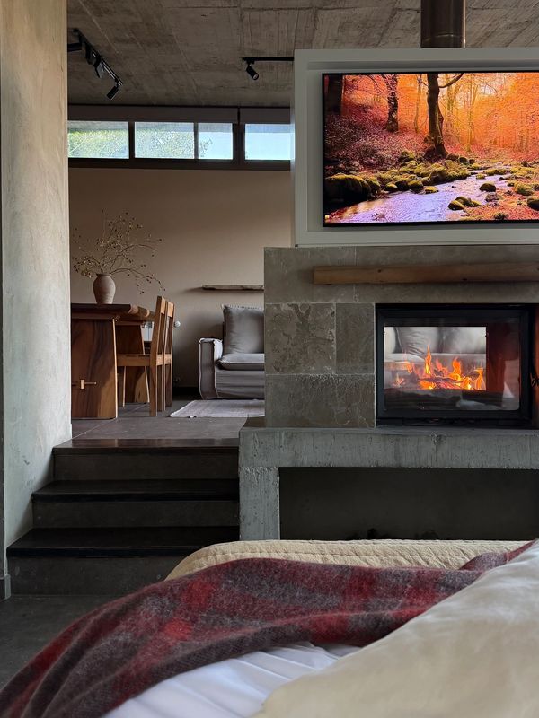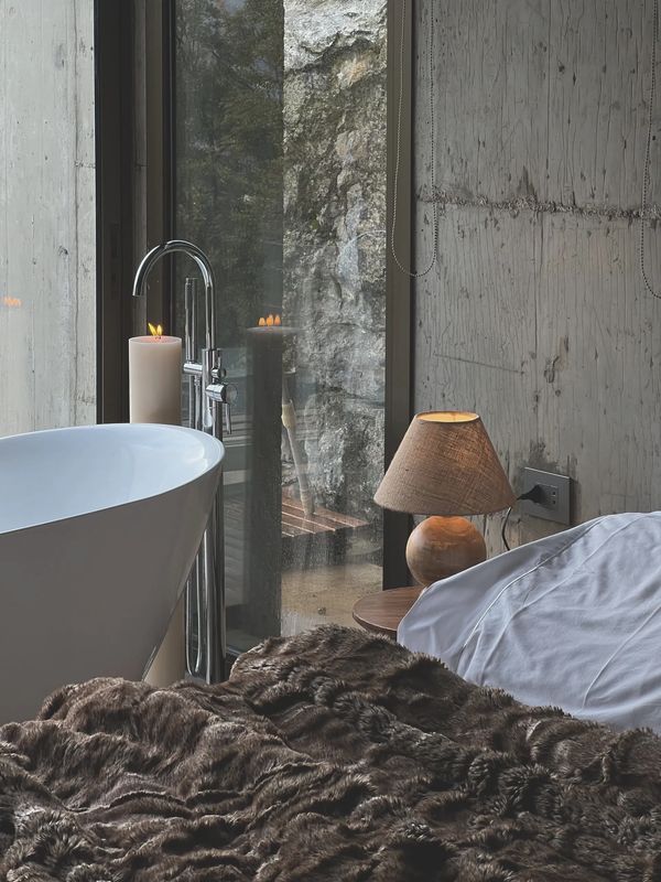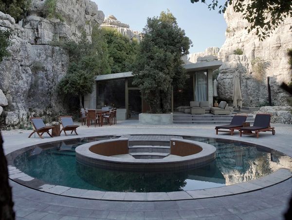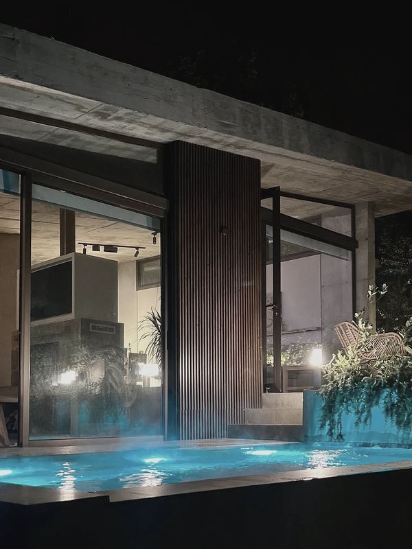 Nestled among rock formations, the Balance Villa seamlessly blends modern concrete design with nature, offering a peaceful retreat for up to four guests. Amidst the serenity of the wilderness, guests will find the perfect balance between relaxation and adventure.