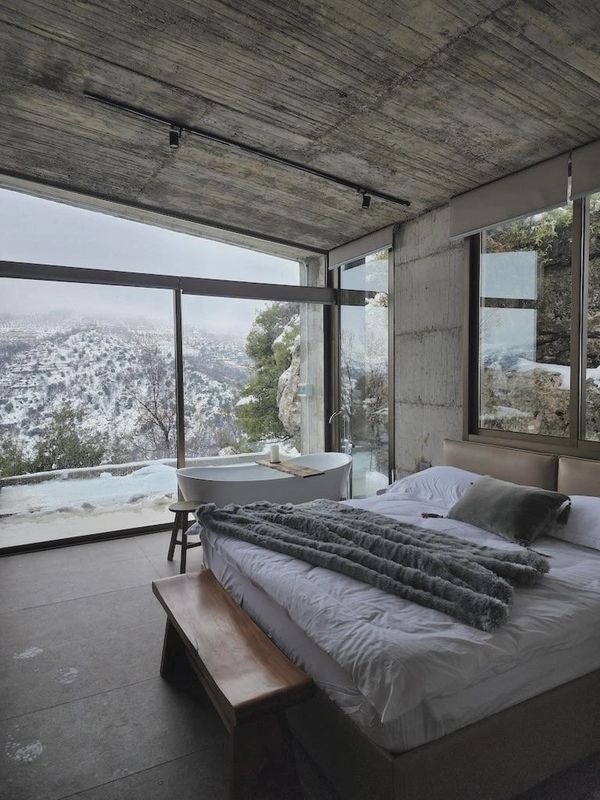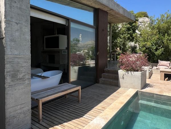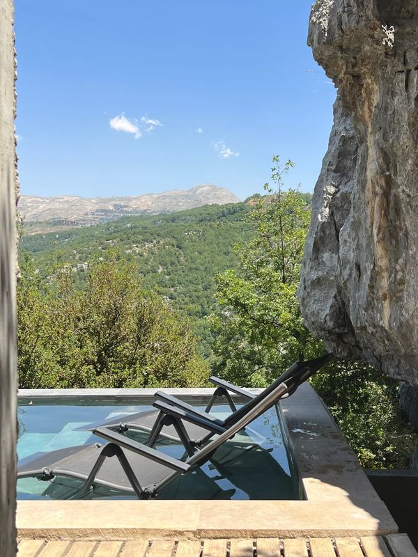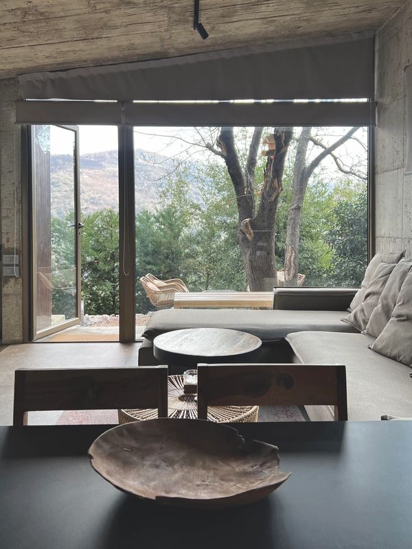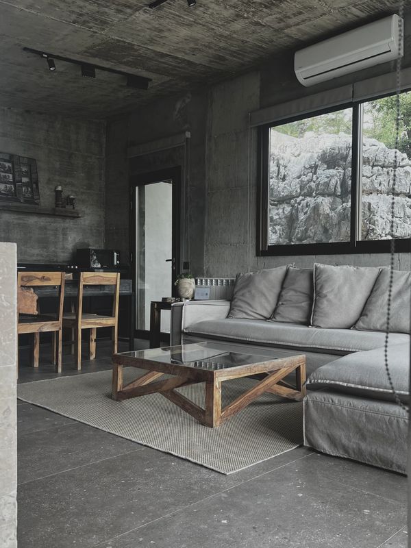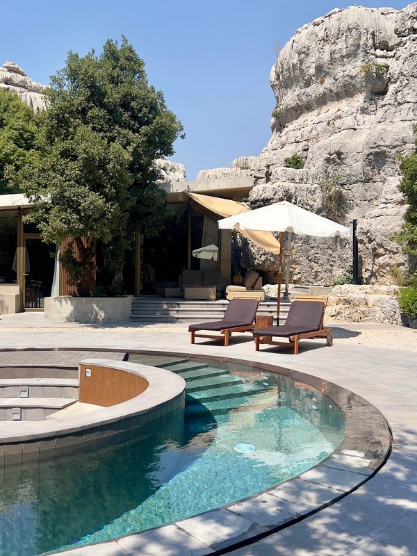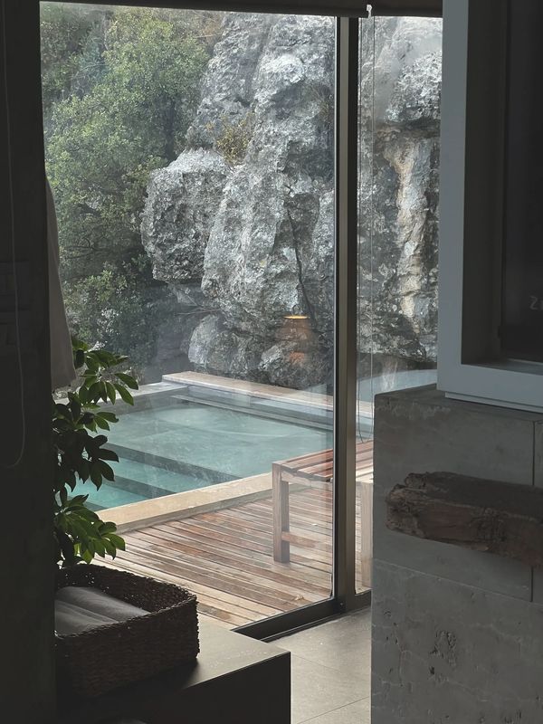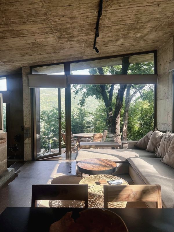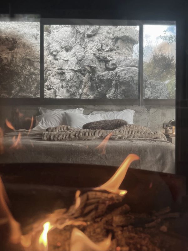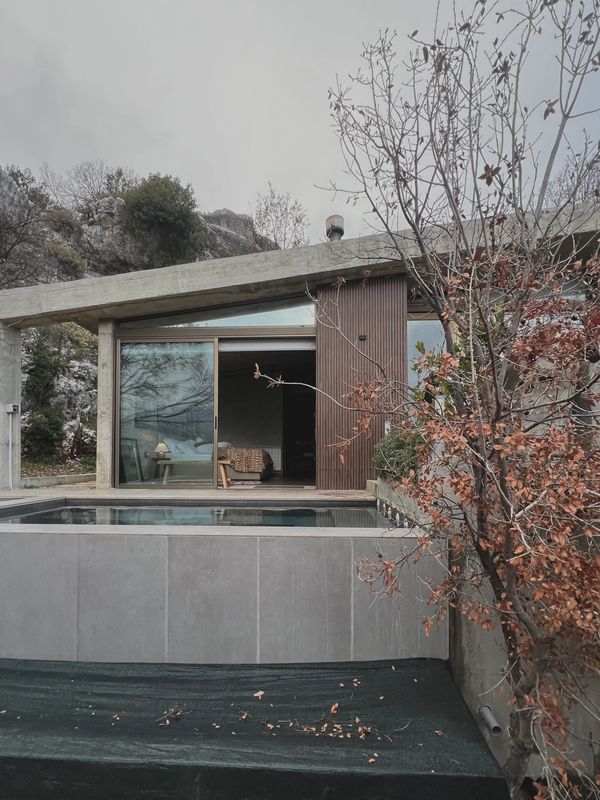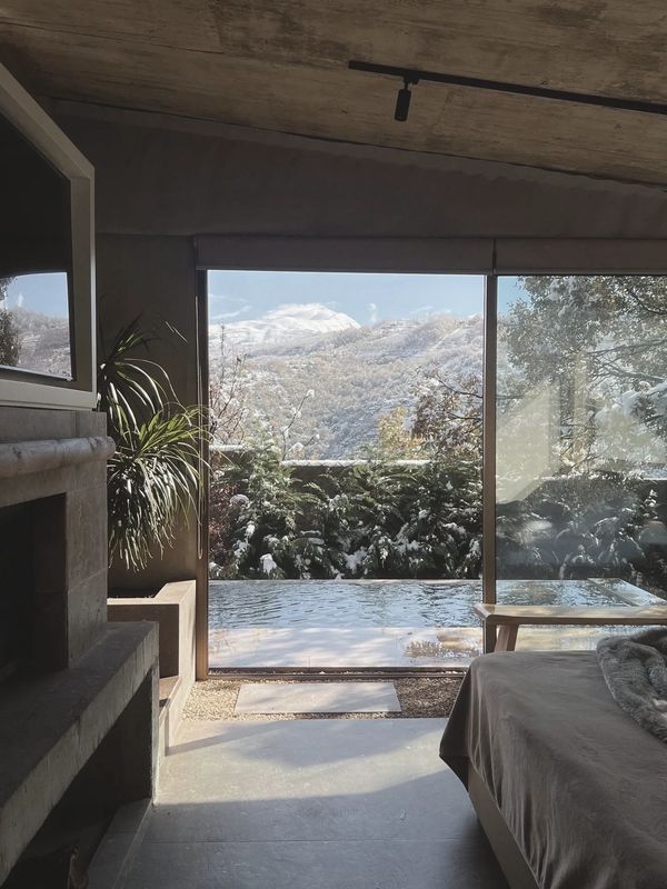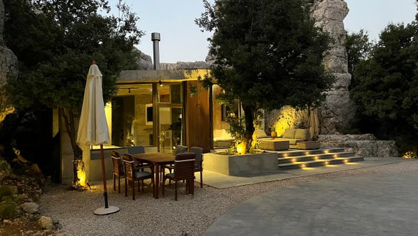 Tucked among majestic rock formations with sweeping mountain views, The Serenity Villa is a thoughtfully designed concrete hideaway. Perfect for couples yet comfortable for up to four guests, it features a spacious 200 m² outdoor patio with a striking round pool offering a peaceful and unforgettable nature escape. Its unique setting also makes it ideal for intimate outdoor private events.