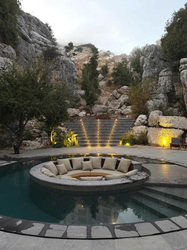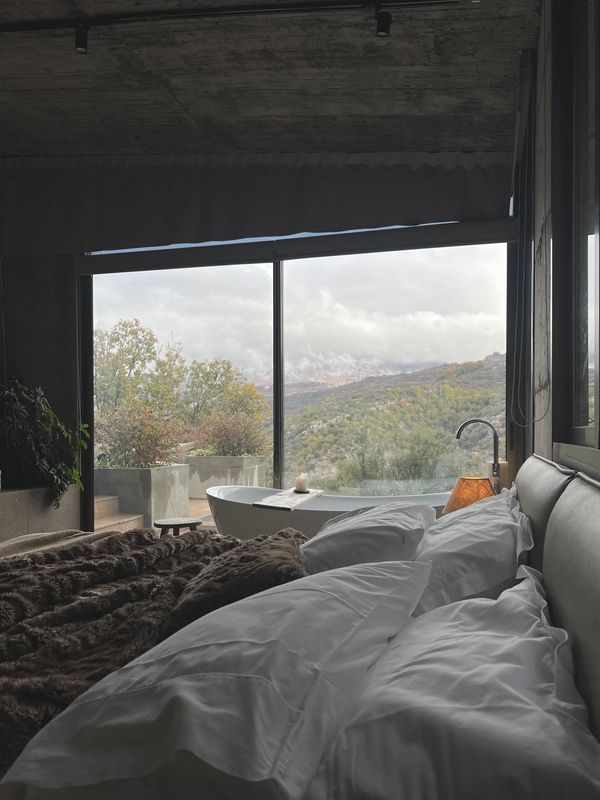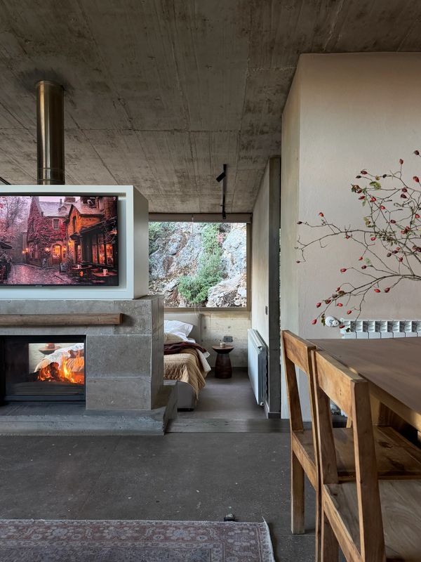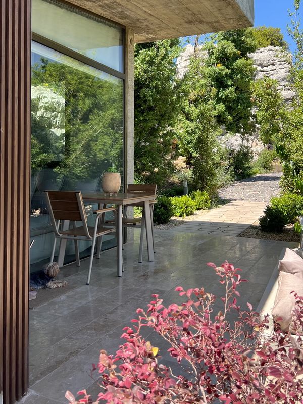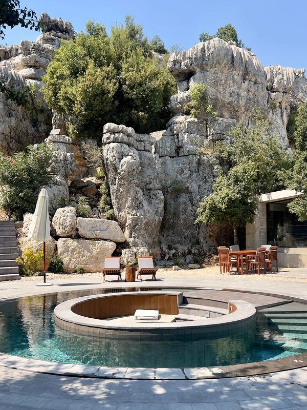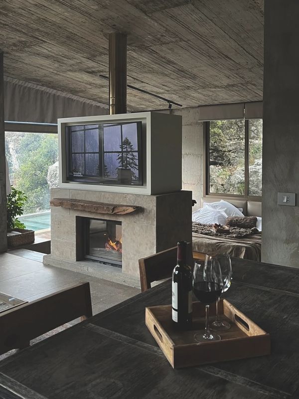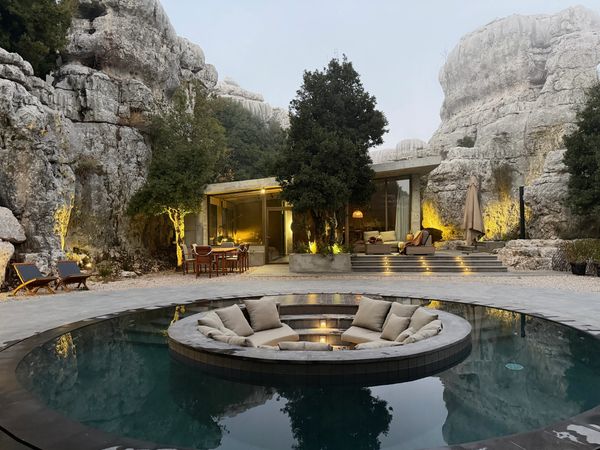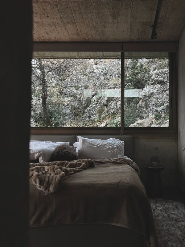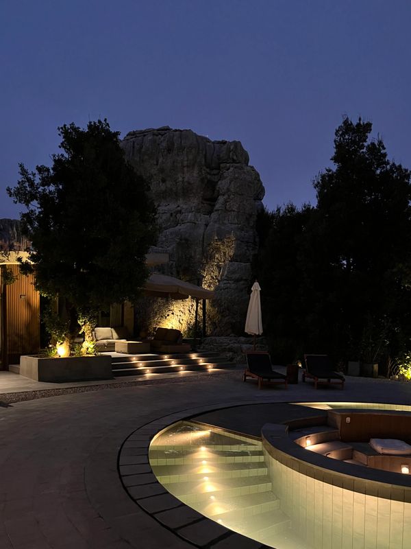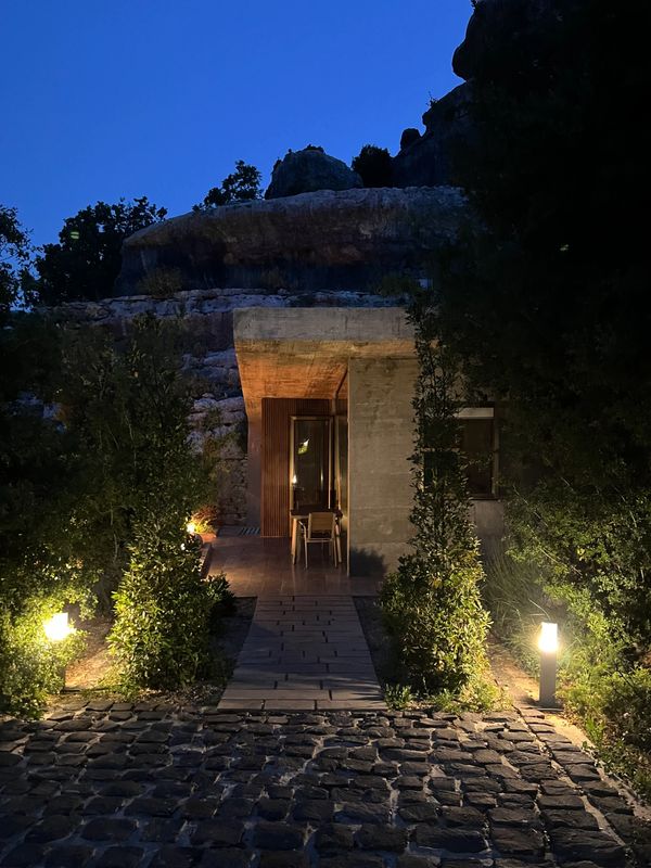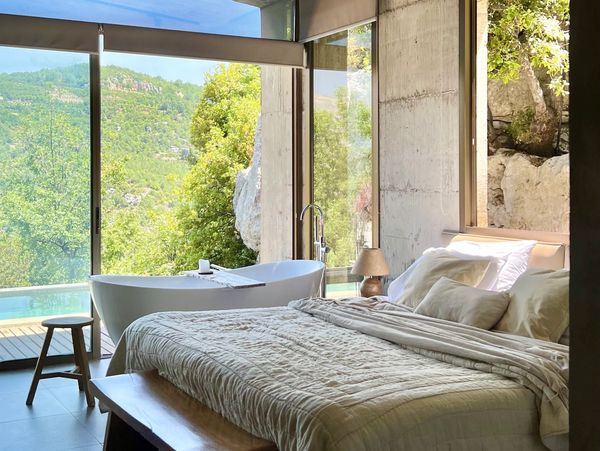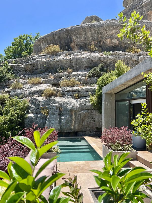 Tucked among majestic rock formations with sweeping mountain views, The Serenity Villa is a thoughtfully designed concrete hideaway. Perfect for couples yet comfortable for up to four guests, it features a spacious 200 m² outdoor patio with a striking round pool offering a peaceful and unforgettable nature escape. Its unique setting also makes it ideal for intimate outdoor private events.
