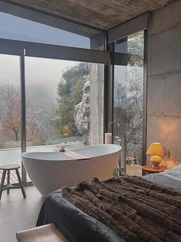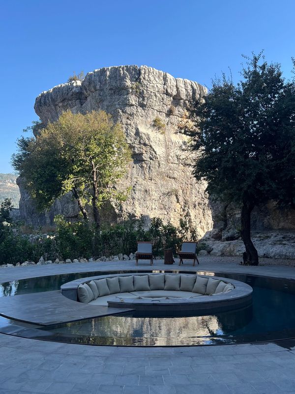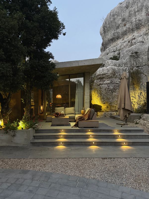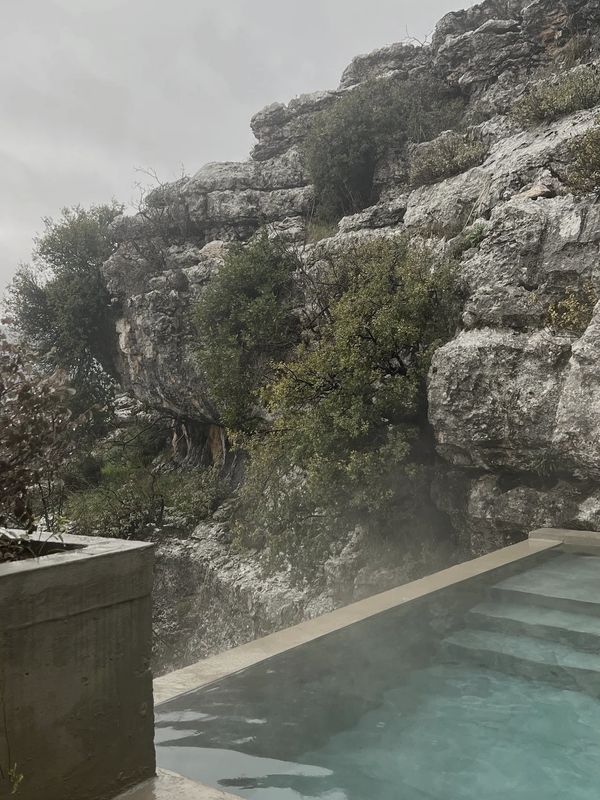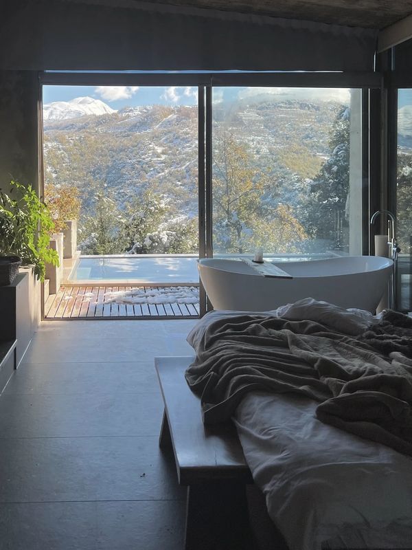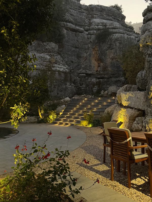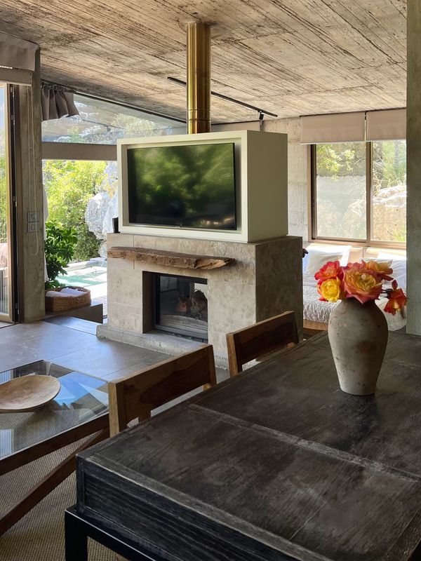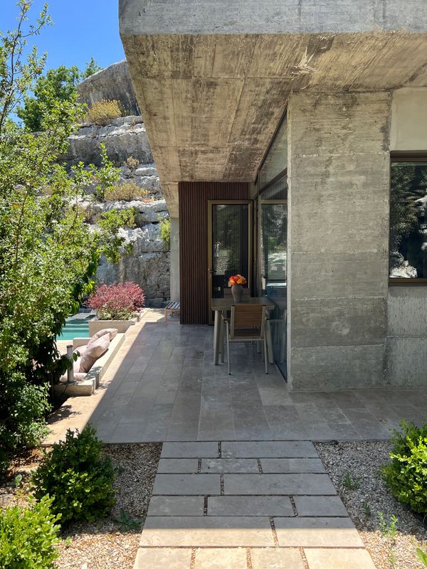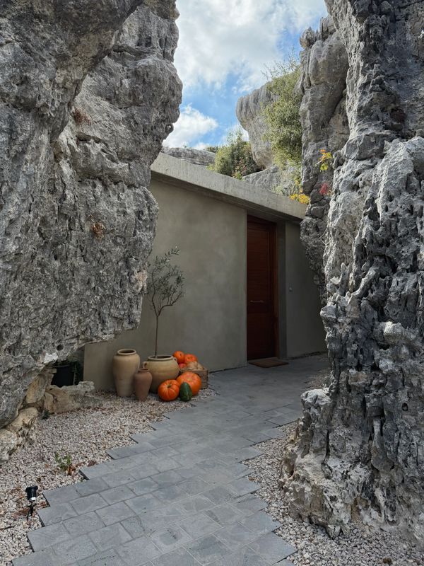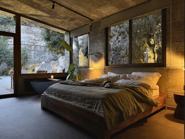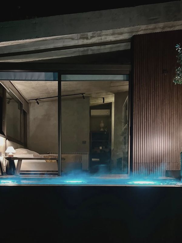 Tucked among majestic rock formations with sweeping mountain views, The Serenity Villa is a thoughtfully designed concrete hideaway. Perfect for couples yet comfortable for up to four guests, it features a spacious 200 m² outdoor patio with a striking round pool offering a peaceful and unforgettable nature escape. Its unique setting also makes it ideal for intimate outdoor private events.