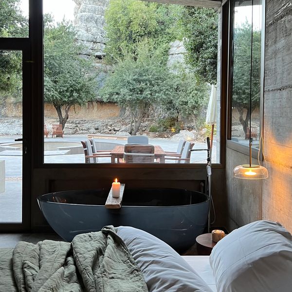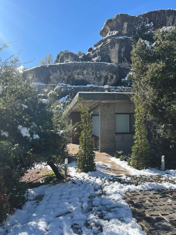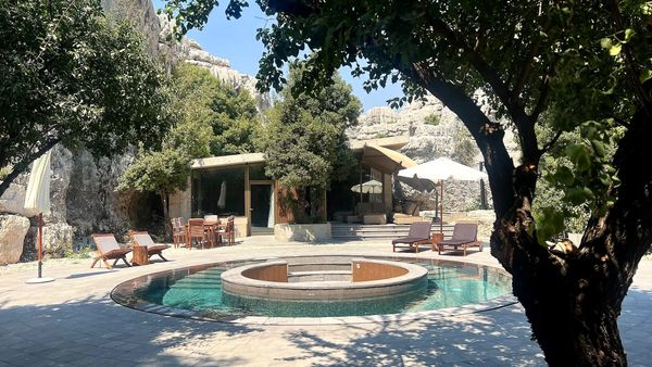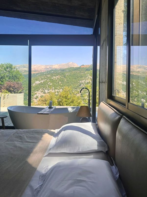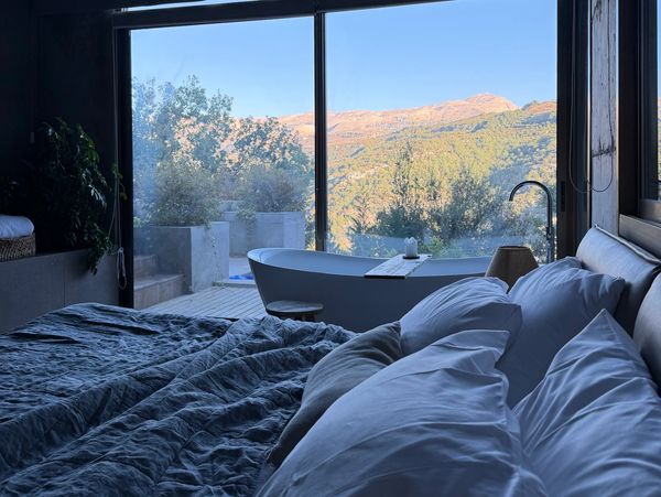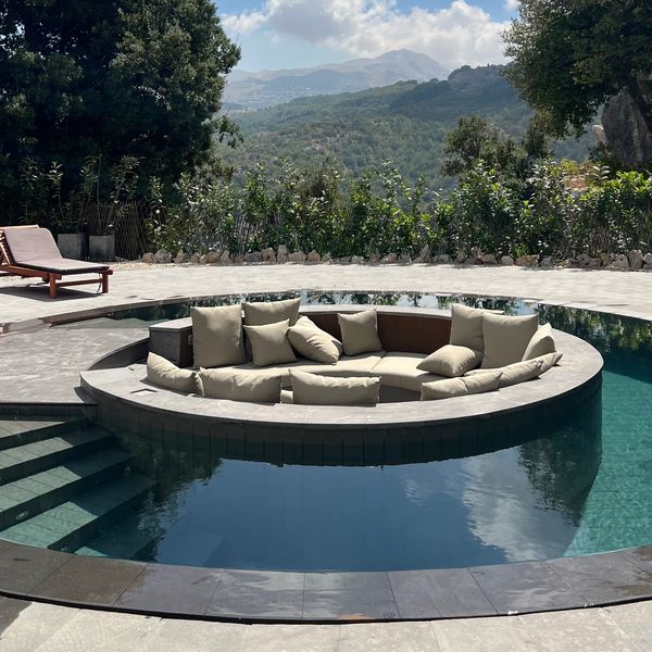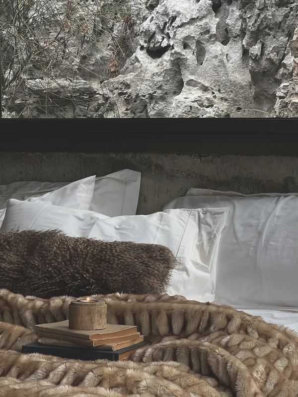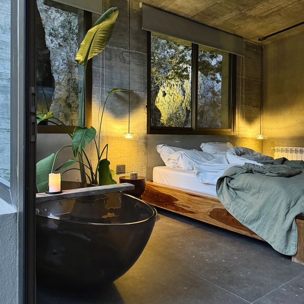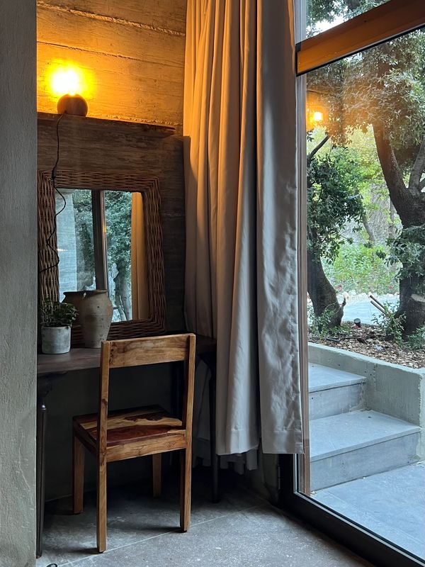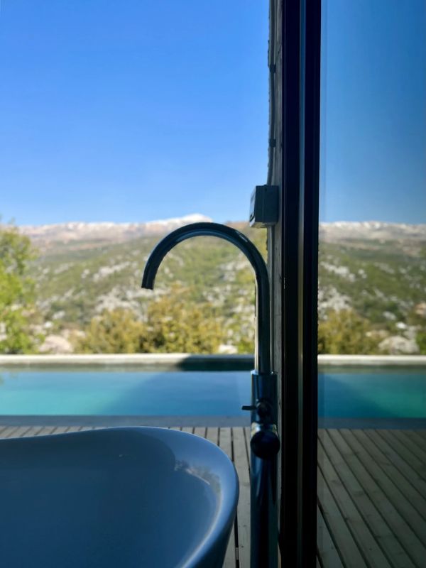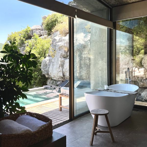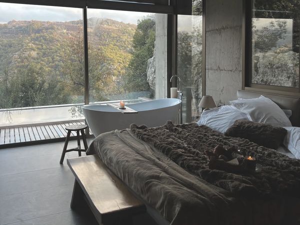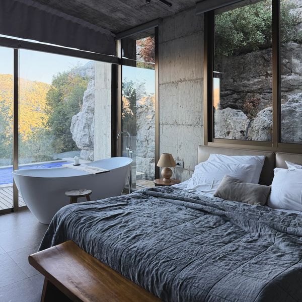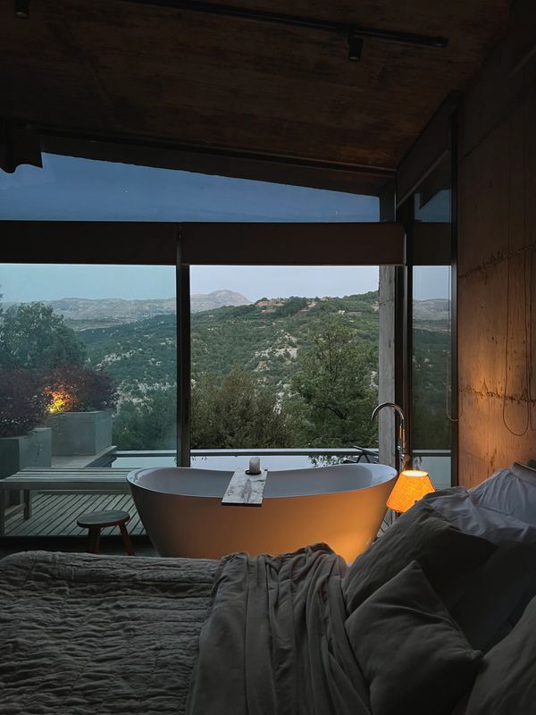 Tucked among majestic rock formations with sweeping mountain views, The Serenity Villa is a thoughtfully designed concrete hideaway. Perfect for couples yet comfortable for up to four guests, it features a spacious 200 m² outdoor patio with a striking round pool offering a peaceful and unforgettable nature escape. Its unique setting also makes it ideal for intimate outdoor private events.