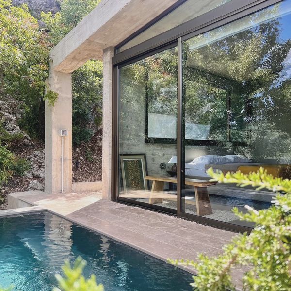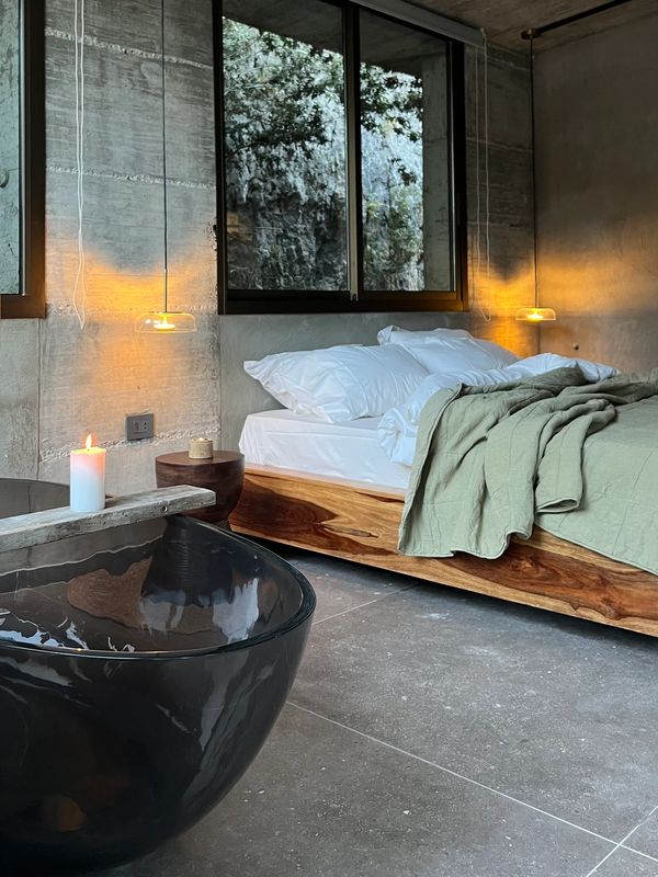 In perfect harmony with its natural surroundings, the Harmony Villa showcases impeccable concrete design. Primarily designed for couples but able to accommodate up to four guests, it offers an ideal haven for those seeking a serene escape in a beautifully crafted setting.
